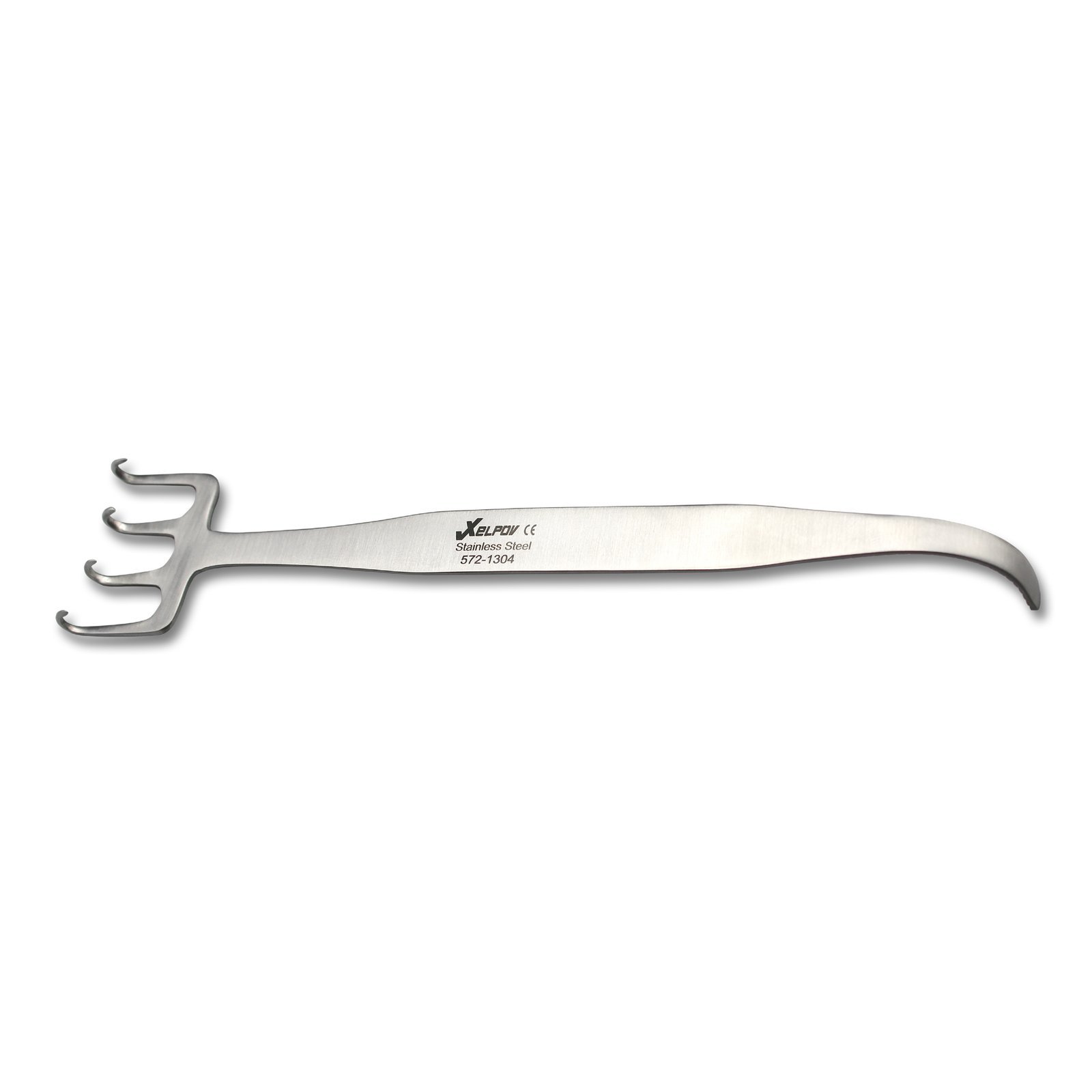 The Rake Retractor contains sharp prongs, but its shorter length and thumb hook is designed for controlled retraction of a specific area of skin. Therefore, it is very useful in narrow operating areas. Also, the thumb hook allows the surgeon to control the refraction angle as well as extent.