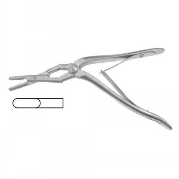 We made two jaw types to suit your requirements. The first model has through cutting jaws for sharp excisions. The second model has curved jaws to make delicate grips on soft nasal tissues.