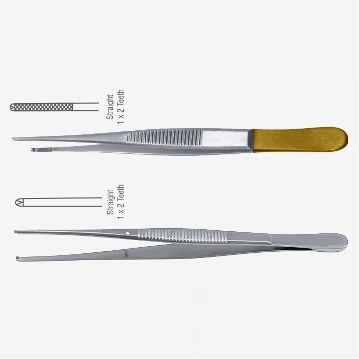 Especially includes 1 x 2 teeth at the tip which help to improve grip on tissues. The narrow jaws of the instrument also increase precision of dissection.